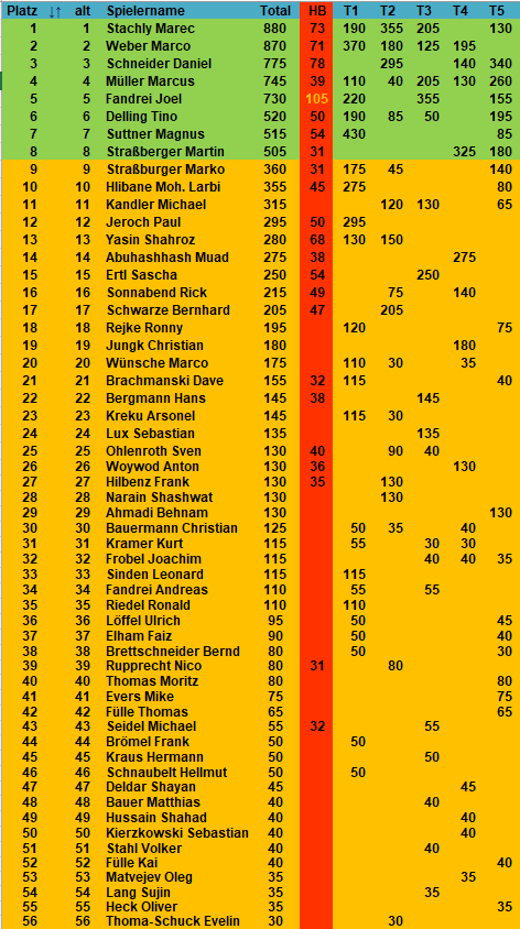 Hinweis: aktuell sind die bisher eingegangenen Meldungen für die nächsten beiden Termine überschaubar. Sollten jeweils eine Woche vor dem Turnier nicht mindestens acht Spieler gemeldet sein, fällt das Turnier ersatzlos aus.